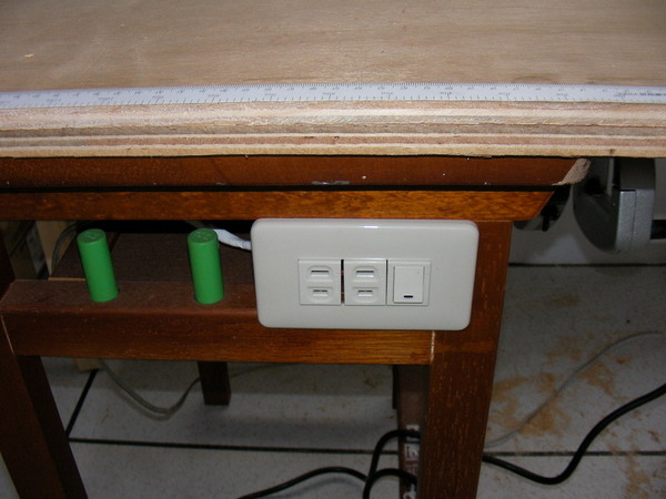 將鋸台放到兩張廢棄桌子上,終於完成了,試切了一下,感覺還蠻順了。