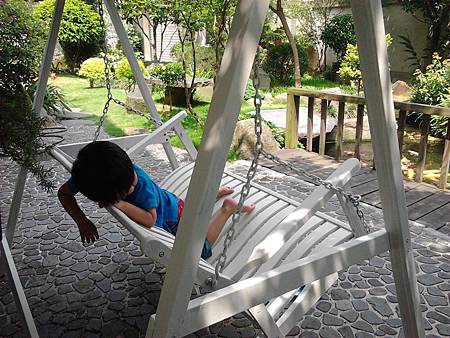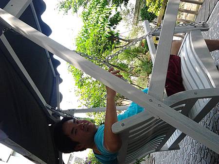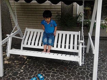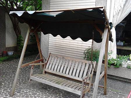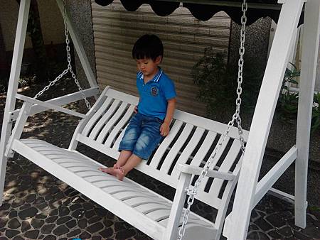 岳父家的鞦韆椅.放久了.木頭有點斑駁.有點髒.所以趁著母親節的週末.就把它漆成白色.小乖應該會更喜歡.果然漆完之後.小乖就迫不及待跑去玩了.接下來還要改造的就是上面的雨棚